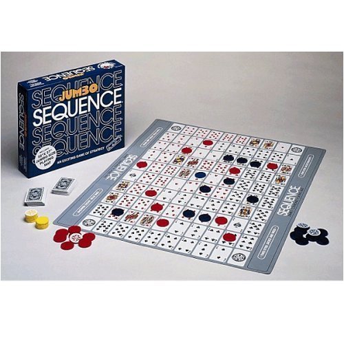 My daughter and I have played Sequence together since she could understand the game. Now we've begun playing the game as a family with teams and it is more fun than ever. I ordered the jumbo version because our normal size version was a bit small when 6 - 10 people are sitting around a large table - plus those of us with poorer eyesight appreciate the larger size! Anyone looking for a game the whole family can enjoy and spend time together - this is it!!!
