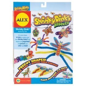Classic Shrinky Dinks with a cool new twist and awesome ALEX Designs! Shapes are preprinted and precut no tracing or cutting required. Jewelry kit includes over 40 precut shapes, 8 colored pencils, beads, earring hoops,barrettes, string and clasps and instructions. Cool Stuff kit includes 20 precut shapes, 8 colored pencils, key chains, magnets, pipe cleaners and stands and instructions. Insect kit includes 26 precut shapes, 8 colored pencils, 2 key chains, insect legs, pipe cleaners and instructions. Suitable for Ages: 5+