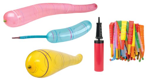 Make sure you ALWAYS have your Rocket Balloons and pump handy for a fun-filled few hours! Attach the end of the balloon rocket over the pump nozzle. Push and pull the pump chamber in a back and forth motion. The balloon rocket will begin to fill with air. When filled to your likings, let the balloon rocket go!! It will fly like crazy all over the room! Each rocket can be used over and over again. Includes 40 Rocket Balloons Also Includes Air Hand Pump for easy balloon inflation Recommended for ages 8 years old and up